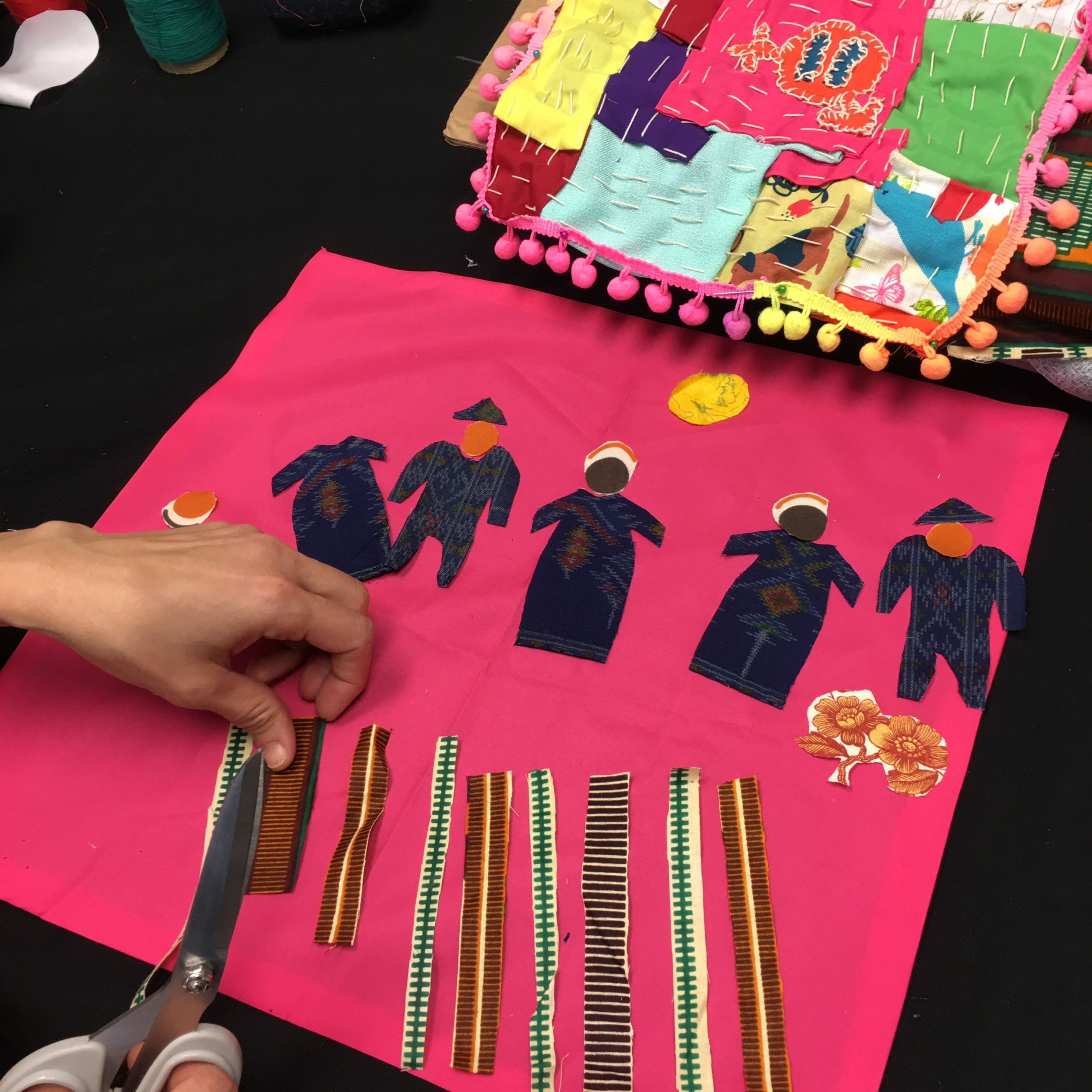 Un espace de création artistique est offert aux femmes immigrantes et celles de la société d’accueil, afin de réaliser une œuvre collective traduisant leur passé leur présent et leur futur.